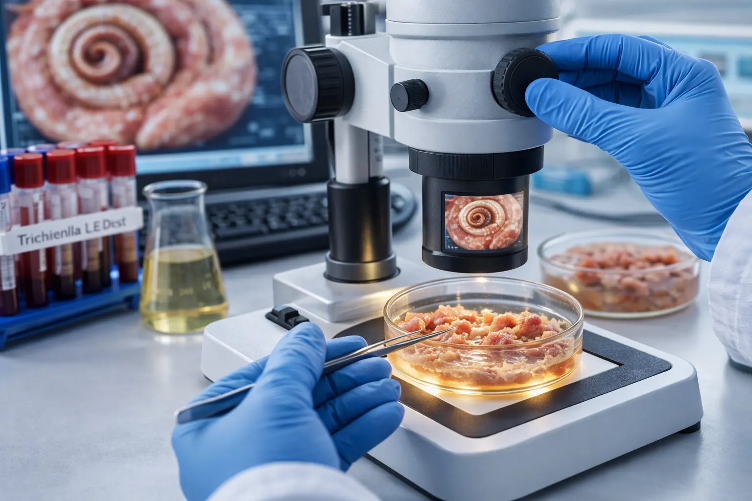 O objetivo do curso de análise de Trichinella é capacitar profissionais para compreender, interpretar e aplicar, de forma técnica e responsável, os princípios que regem a análise de Trichinella, desde os fundamentos biológicos do parasita até os métodos laboratoriais. Ele abrange os pontos críticos da inspeção de suínos. Dessa forma, o participante desenvolve domínio conceitual sobre amostragem, identificação do agente e métodos clássicos e avançados de detecção e gestão sanitária. Isso garante que suas decisões estejam alinhadas à segurança alimentar e à proteção da saúde pública.