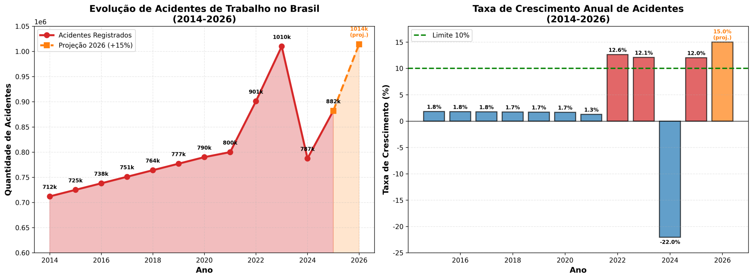 Evolução crescente dos acidentes de trabalho no Brasil evidencia falhas estruturais em capacitação, validação prática e aplicação das normas.